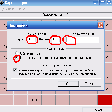 программа выдаст Вам вероятности нахождения мин в ячейках. Если